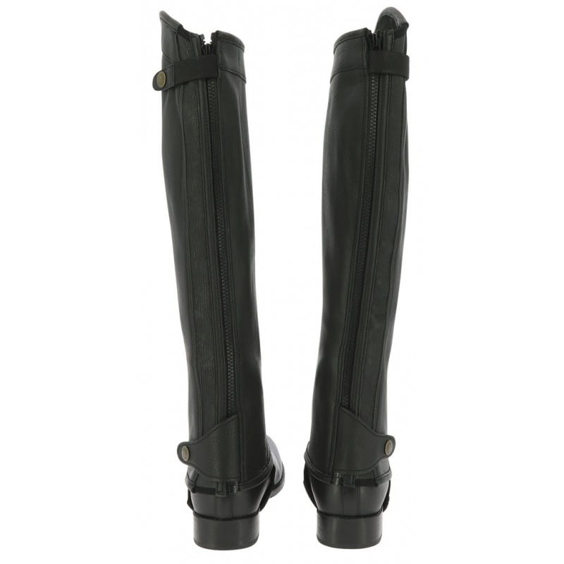 Z miękkiej, drobnoziarnistej licowej skóry bydlęcej, z ozdobnym wzmocnieniem z gładkiej skóry na górze cholewki. Zamek błyskawiczny YKK z tyłu osadzony na elastycznej skórzanej podporze i zabezpieczony zatrzaskami na skórzanej klapie u dołu i na elastycznym słupku u góry cholewki. Idealne połączenie dla idealnego dopasowania do łydki i optymalnego komfortu. Elastyczne przejście na stopę ze wzmocnieniem ze skóry.