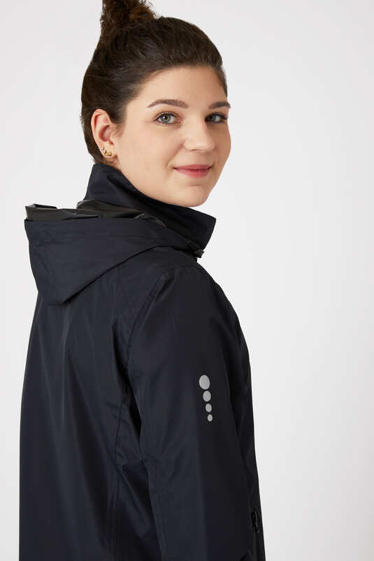 Lekka kurtka przeciwdeszczowa bez podszewki. Całkowicie wodoodporna dzięki podklejanym szwom. Przewiewny materiał zapewnia wygodę i sprawdzi się również jako nieprzemakalna warstwa zewnętrzna w deszczowe dni. Kaptur można zwinąć i schować w kołnierzu. Elastyczne wykończenie mankietów i regulowane, elastyczne troczki przy kapturze. Sygnowane detale na rękawie.
