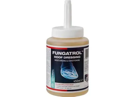 Fungatrol Hoof Dressing to w 100% naturalny preparat pielęgnacyjny do kopyt koni, stworzony z myślą o nawilżaniu i odżywianiu suchych oraz łamliwych kopyt. Regularne stosowanie wspiera zdrowie, elastyczność i wytrzymałość rogu kopytowego, zapobiegając jego pękaniu i kruszeniu się.