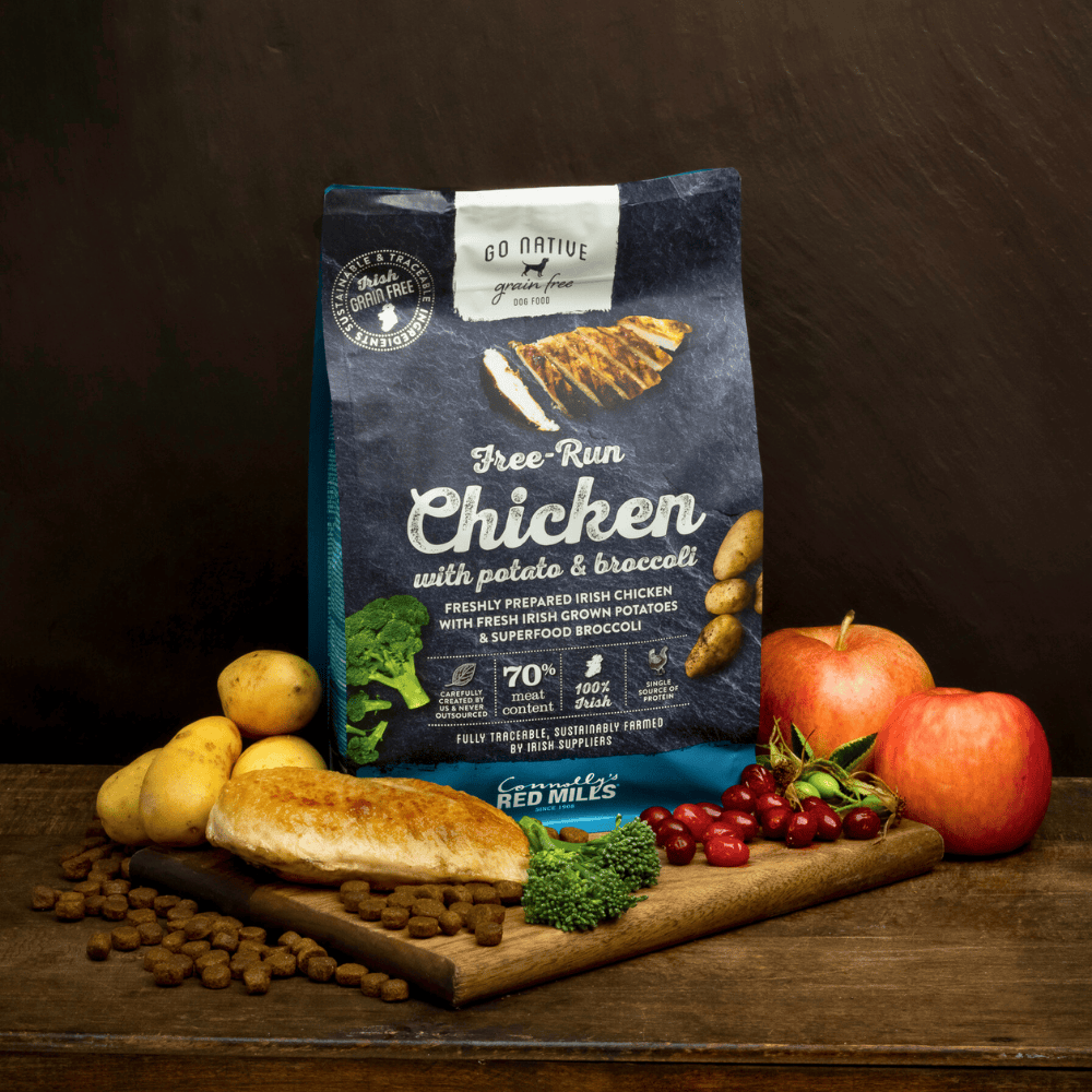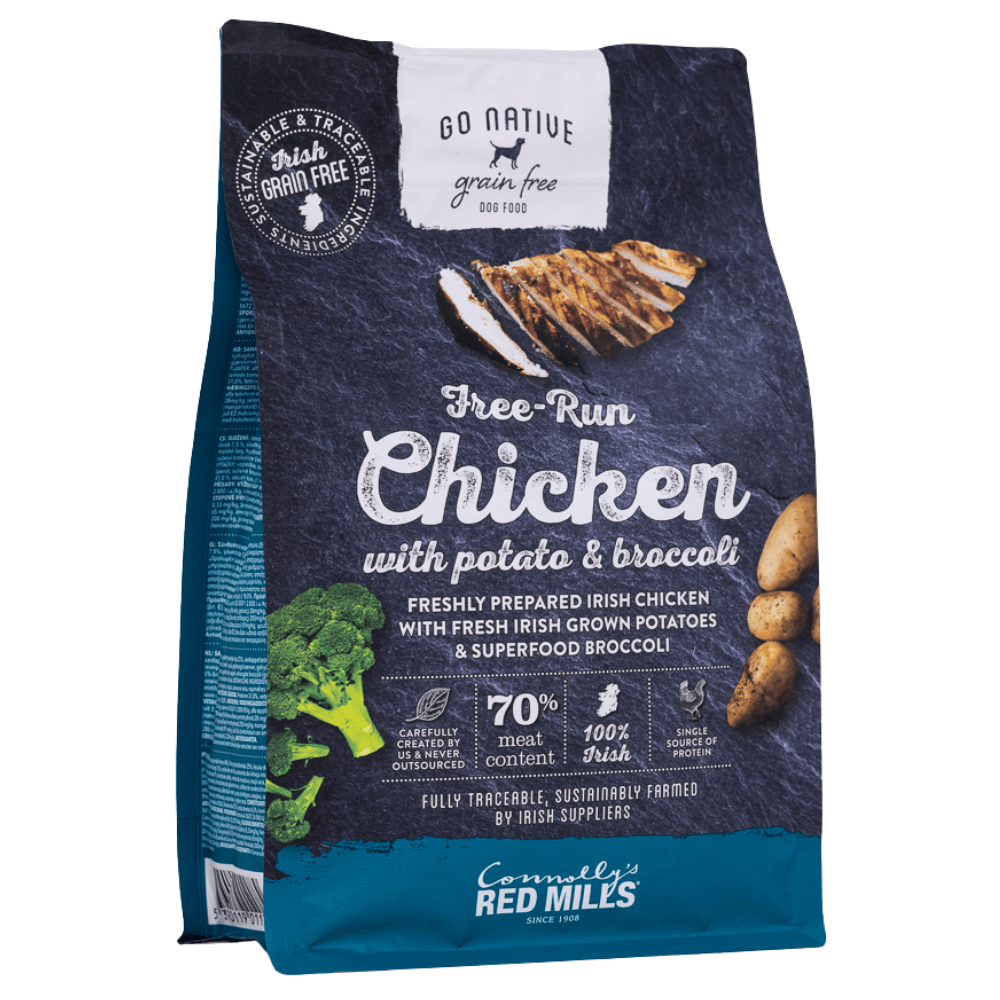 Karma Go Native - Kurczak z ziemniakiem i brokułem składa się w 70% z pysznego irlandzkiego kurczaka z wolnego wybiegu. Ta bezzbożowa receptura została wzbogacona o naturalne brokuły i ziemniaki, oferując zdrowy, warzywny smak, a dodatkowo jest pełna przeciwutleniaczy wspierających układ odpornościowy Twojego psa. Zawiera również bogactwo prebiotyków z alg morskich, które wspomagają zdrowie układu pokarmowego!