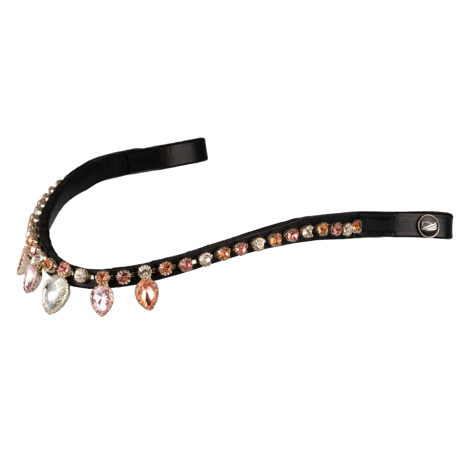 Jego piękno jest dodatkowo podkreślone przez rząd oprawionych okrągłych kryształów, dostępnych w różnych kolorach, które nadają blasku i elegancji czubkowi głowy konia.