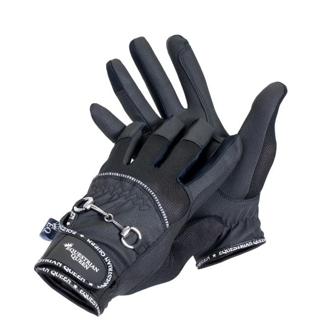 Modne rękawiczki wykonane z wysokiej jakości materiałów. Z wierzchu pokryte cienką siateczką, a od spodu wzmocnione w miejscu trzymania wodzy. Zdobione srebrnym wędzidłem. Zapinane na rzep z lamówką. Dodatkowo posiadają odblaskowy pasek - zwiększający widoczność w terenie.