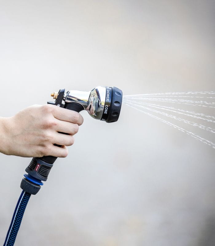 Wytrzymała głowica prysznicowa wykonana z wysokiej jakości tworzywa sztucznego z 7 stopniami strumienia, od szerokiego do wąskiego zakresu strumienia, od silnych do miękkich strumieni, mosiężna wielofunkcyjna głowica prysznicowa jest idealna do każdego zastosowania w stajni i w podróży. Bezstopniowa regulacja dozowania wody i stała blokada do ciągłego natryskiwania. Łatwa obsługa jedną ręką.